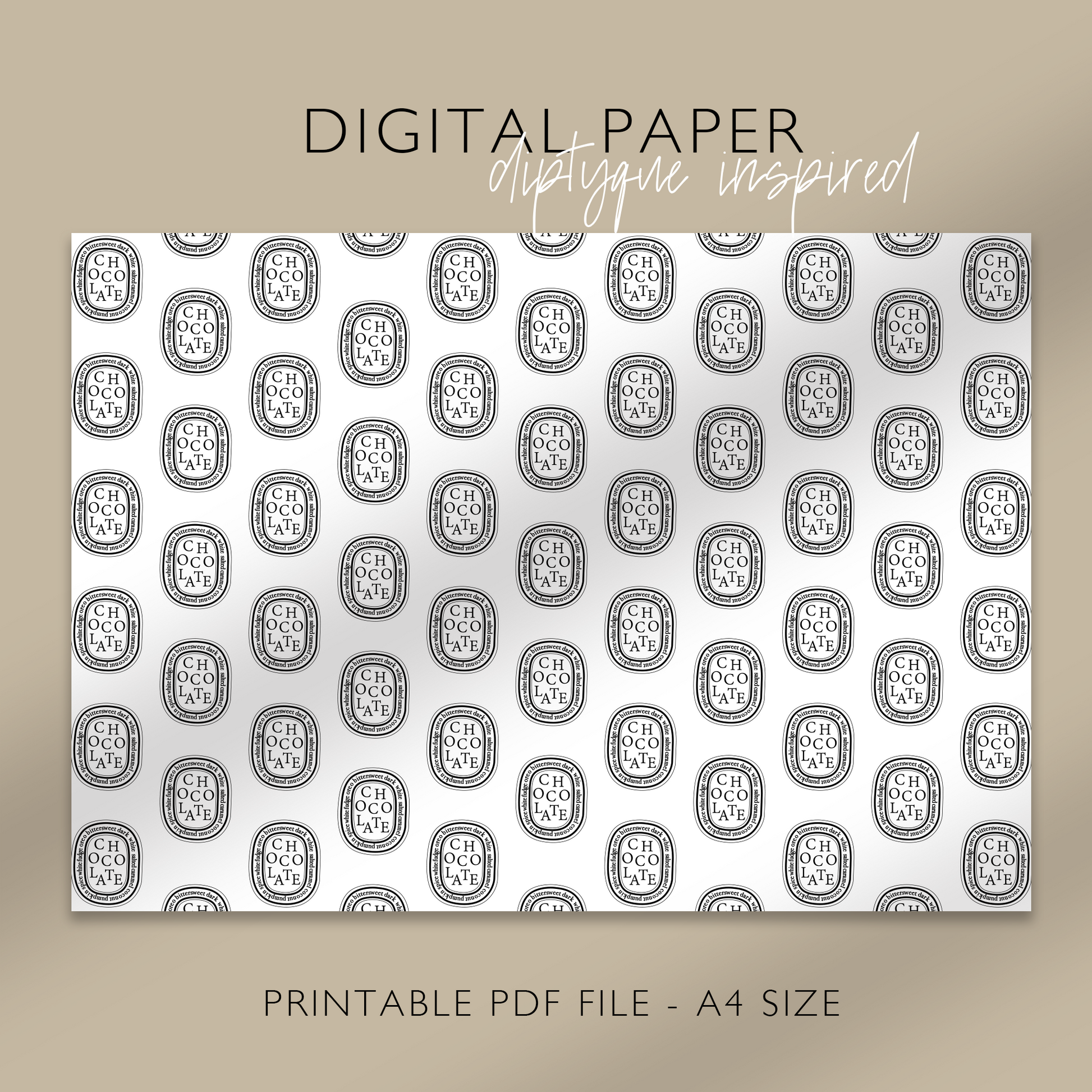 "CHOCOLATE" Diptyque Inspired Digital Paper, Printable A4 Sheet
